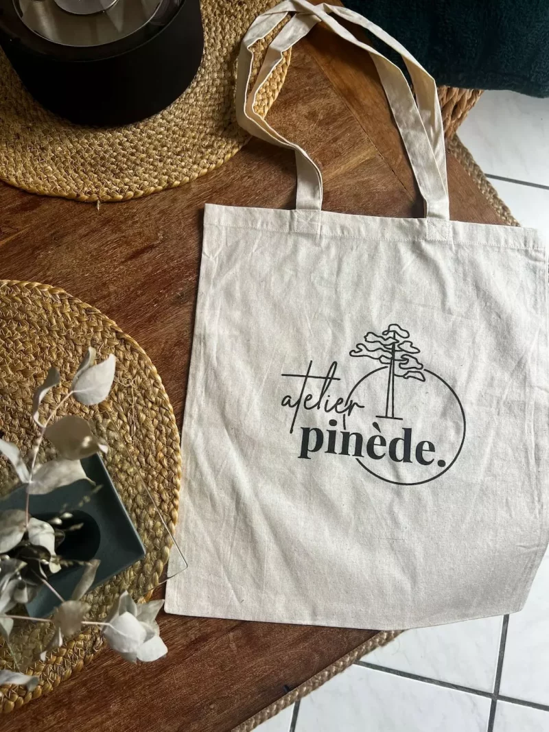 Totebag en coton bio imprimé avec le logo atelier pinède